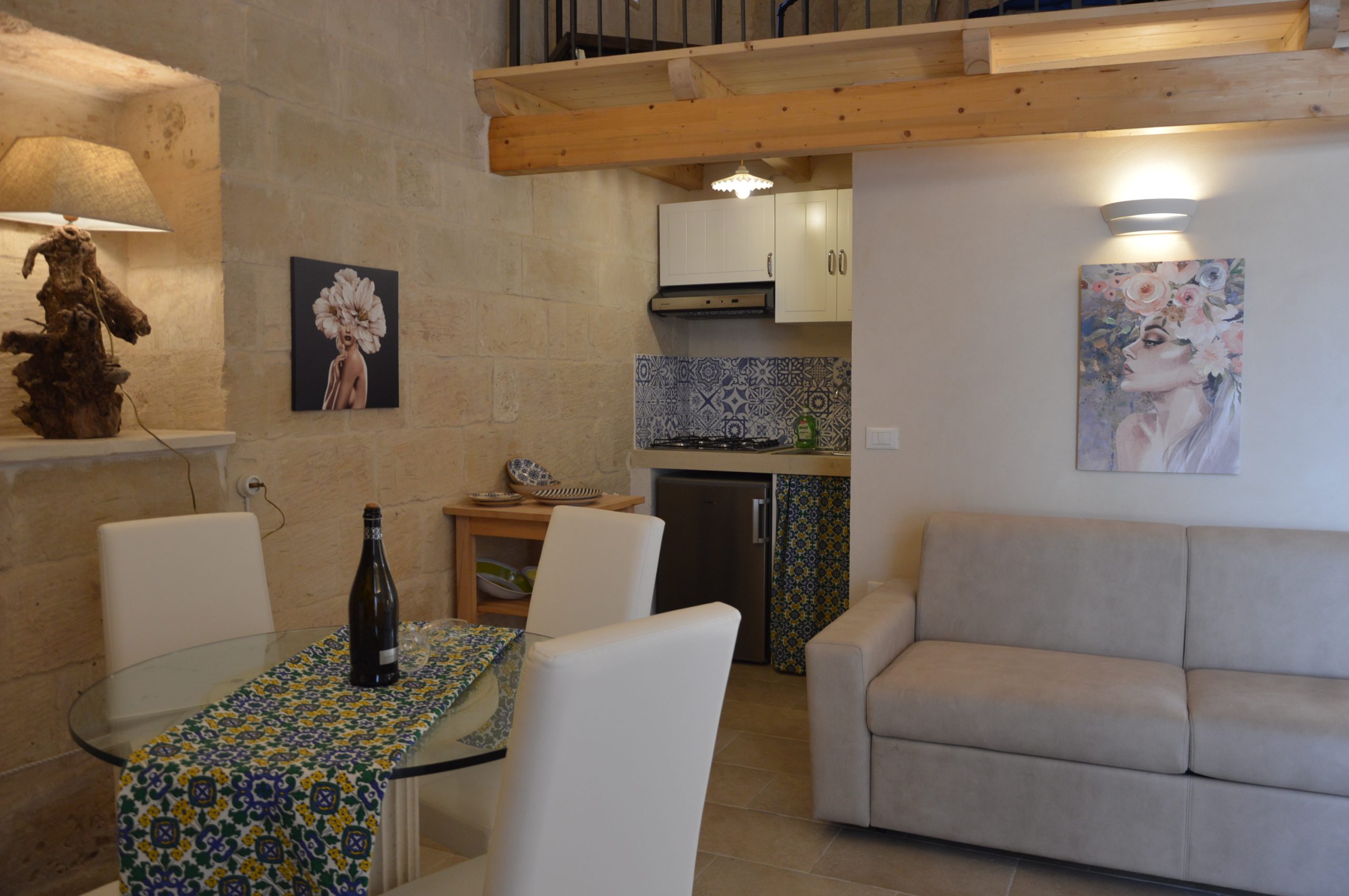 La Taranta ha una superfice di circa 32 mq + 14 mq. di soppalco ed è così composta: zona giorno al piano terra con angolo cottura e divano letto matrimoniale, bagno completo; soppalco con letto matrimoniale ed appendiabiti. All’esterno un comodo terrazzino dove trascorrere piacevolmente le ore della giornata e consumare in relax i pasti.