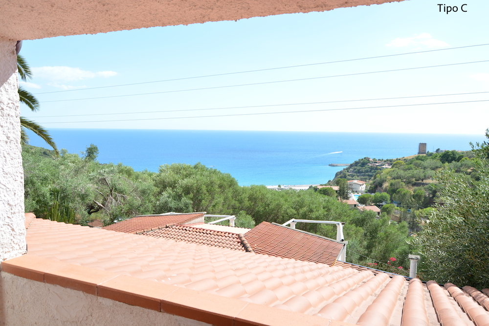 La villetta Pozzallo misura circa 65 mq. è ubicata al piano rialzato rispetto alla piscina ed è composta da: ingresso/salottino con divano letto matrimoniale e TV-sat, due camere da letto matrimoniali, cucina abitabile, bagno e patio con tavolo e panche con vista sullo splendido golfo del mare di Camerota.